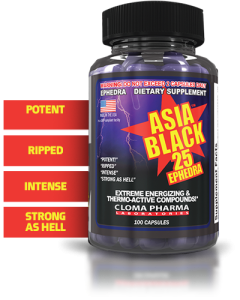 Cloma Pharma Черная Азия препарат для людей, которые знают, чего хотят от таблетки для похудения с экстрактом эфедры. Черная Азия 25 для похудения состоит из ЭКА стека, содержащий экстракт эфедры, кофеин и аспирин. Если вы хотите, сидя в кресле сжигать калории в течение всего дня, как если бы вы были в тренажерном зале, вы обязательно должны попробоватьЧёрная Азия 25.