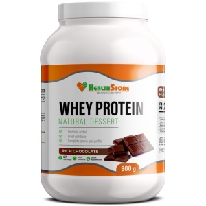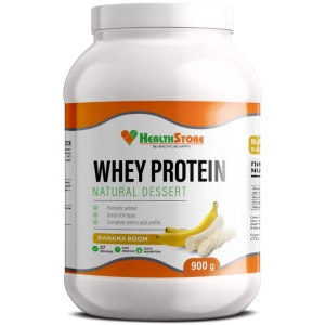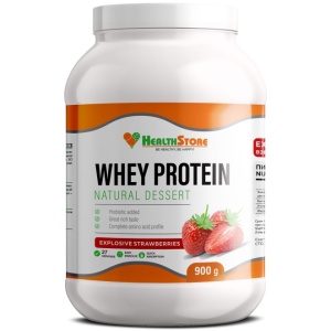 HealthStore Whey Protein 900 гр – концентрат сывороточного протеина, который позволяет насытить рацион спортсмена качественным белком с полноценным аминокислотным профилем. Такая форма белка не перегружает желудочно-кишечный тракт и характеризуется высокой скоростью усвоения. В течение получаса после употребления порции коктейля, содержащийся в нем протеин расщепляется на аминокислоты. Их концентрация в крови увеличивается в 4 раза. С учетом регулярных силовых нагрузок это позволяет создать оптимальные условия для синтеза мышечного белка и, как следствие, прироста мускульной массы.