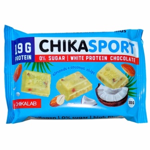 Chikalab Chika Sport шоколад белый с миндалем и кокосовыми чипсами 100 гр