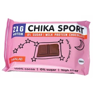 В качестве подсластителя в шоколаде Chika Sport используются кукурузное волокно и сукралоза. Кукурузное волокно – это пищевое волокно, сладкая клетчатка, которая укрепляет кости.