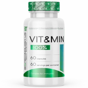 BioTechnology.us Vit&Min Forte - это комплексная ежедневная добавка, предназначенная для людей, желающих получить все витамины и минералы, приняв меньшее количество капсул. Поддерживайте свое питание с помощью полной поливитаминной и минеральной формулы с помощью всего одной капсулы в день.