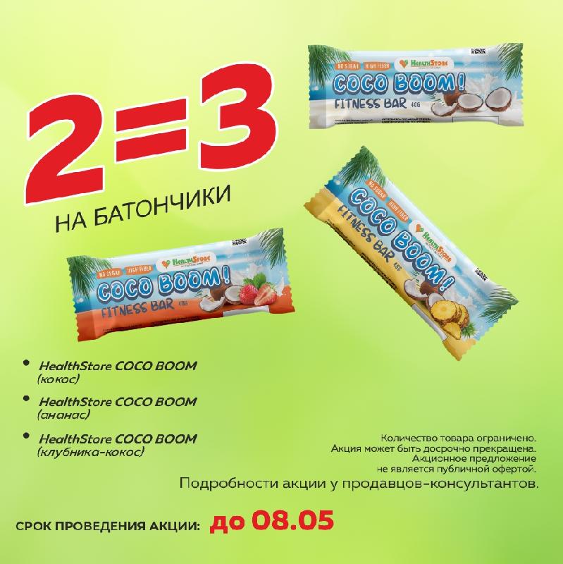 2=3 на батончики HealthStore COCO BOOM: все вкусы!